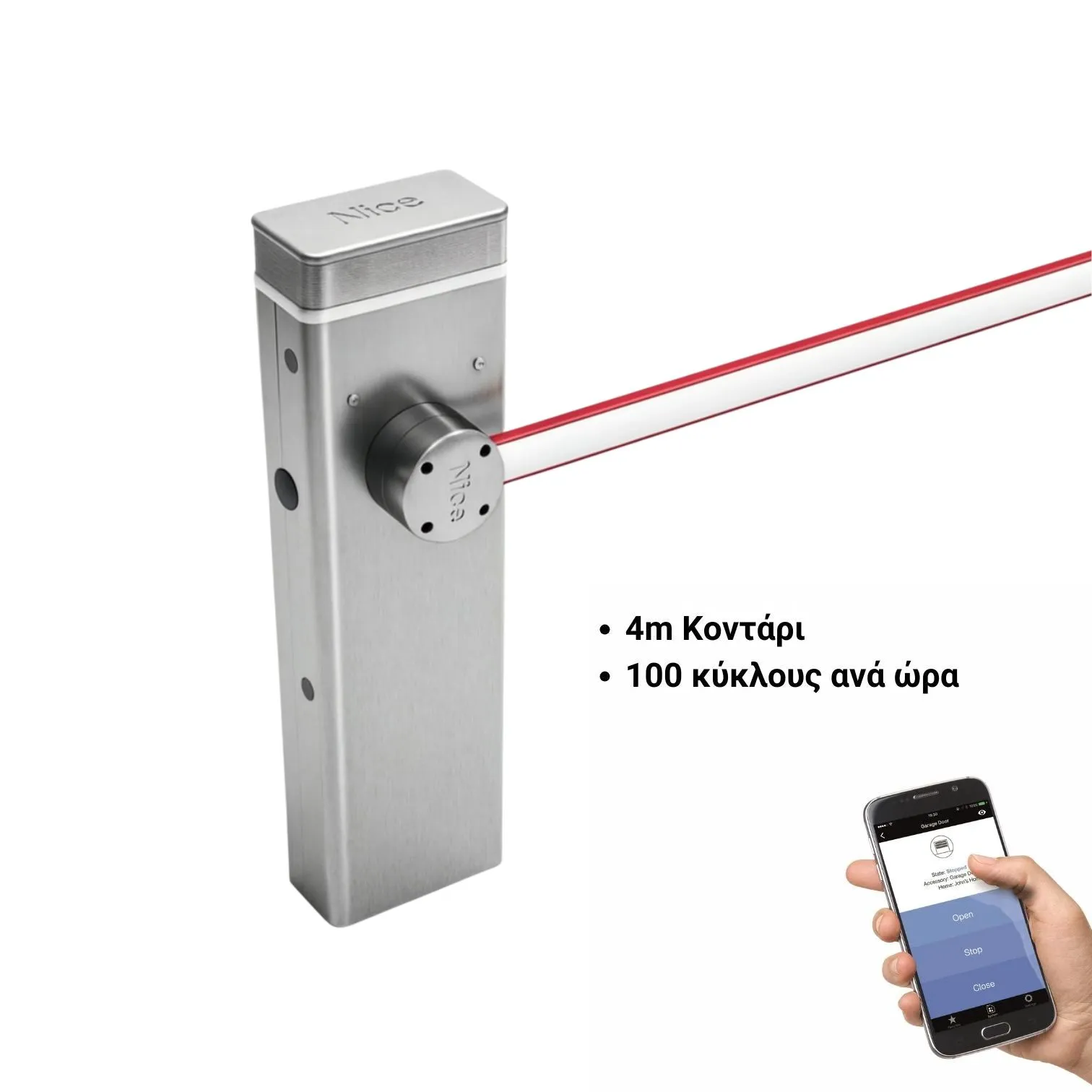 Εναλλακτική μπάρα με 4m κοντάρι, διαφορετικό μοντέλο Nice, χωρίς INOX.