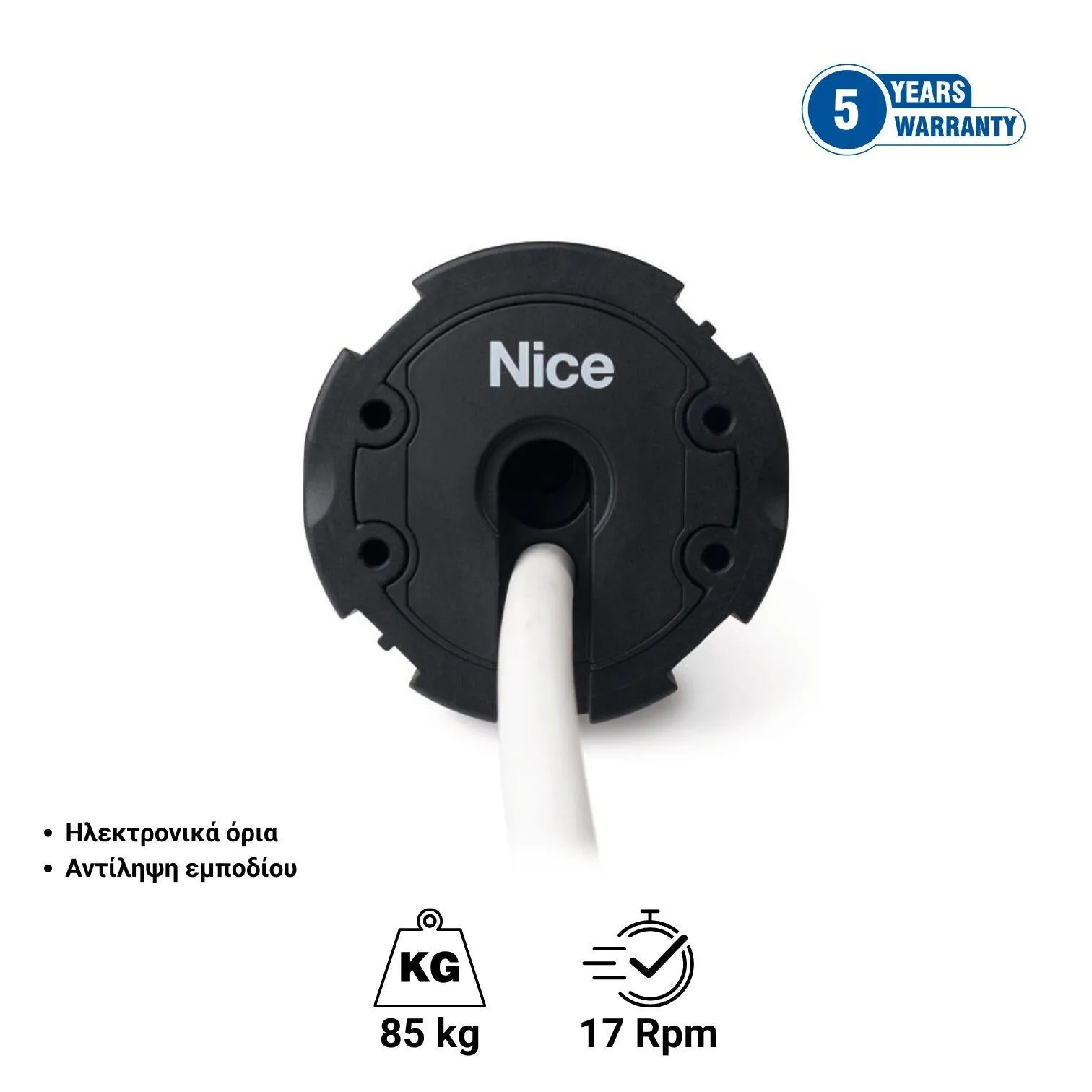 Ενσύρματο μοτερ για ρολά και γκαραζόπορτες με ηλεκτρονικά όρια και αντίληψης εμποδίου. Μέγεθος L Ø 58mm