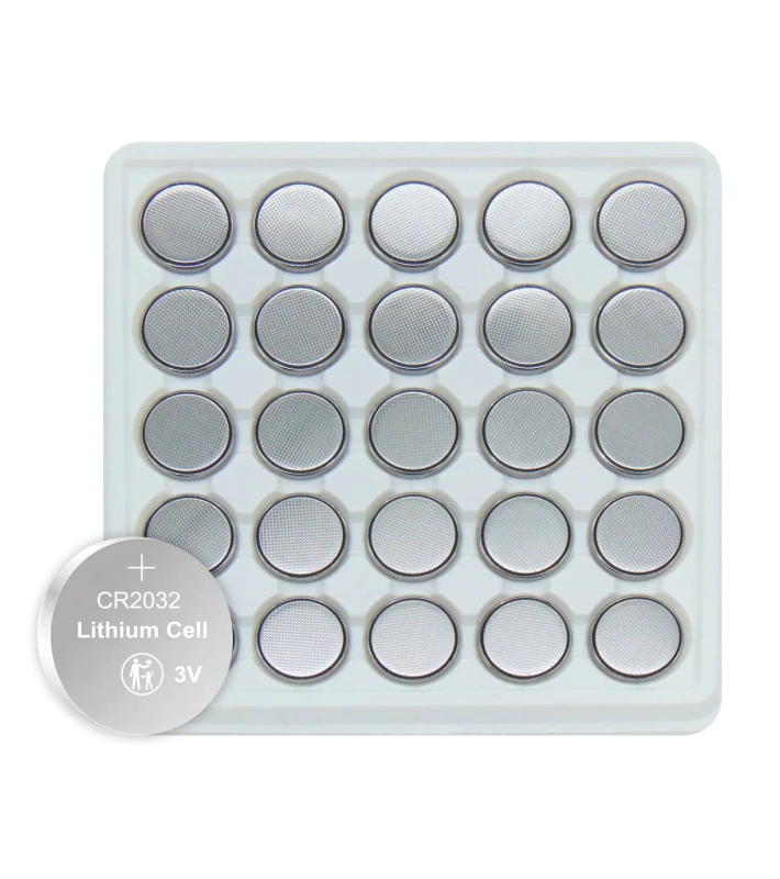Μπαταρία λιθίου κουμπί • Μέγεθος: CR2032 • Ονομαστική τάση: 3.0V • Χωρητικότητα: 220mAh (15kΩ, 24h/d, e.v.: 2.0V) • Σύσταση: Li/MnO2 • Ύψος: 2.9-3.2mm • Διάμετρος: 19.7-20.0mm • Βάρος: 2.9gr • Διάρκεια Ζωής: 5 χρόνια • Εφαρμογές: Computer memory backup, κάμερες, τηλεχειριστήρια, μηχανή υπολογισμού(calculator), θερμόμετρα, συναγερμοί αυτοκινήτου και ρολόγια, κλπ. Συσκευασία: Pack (25pcs)