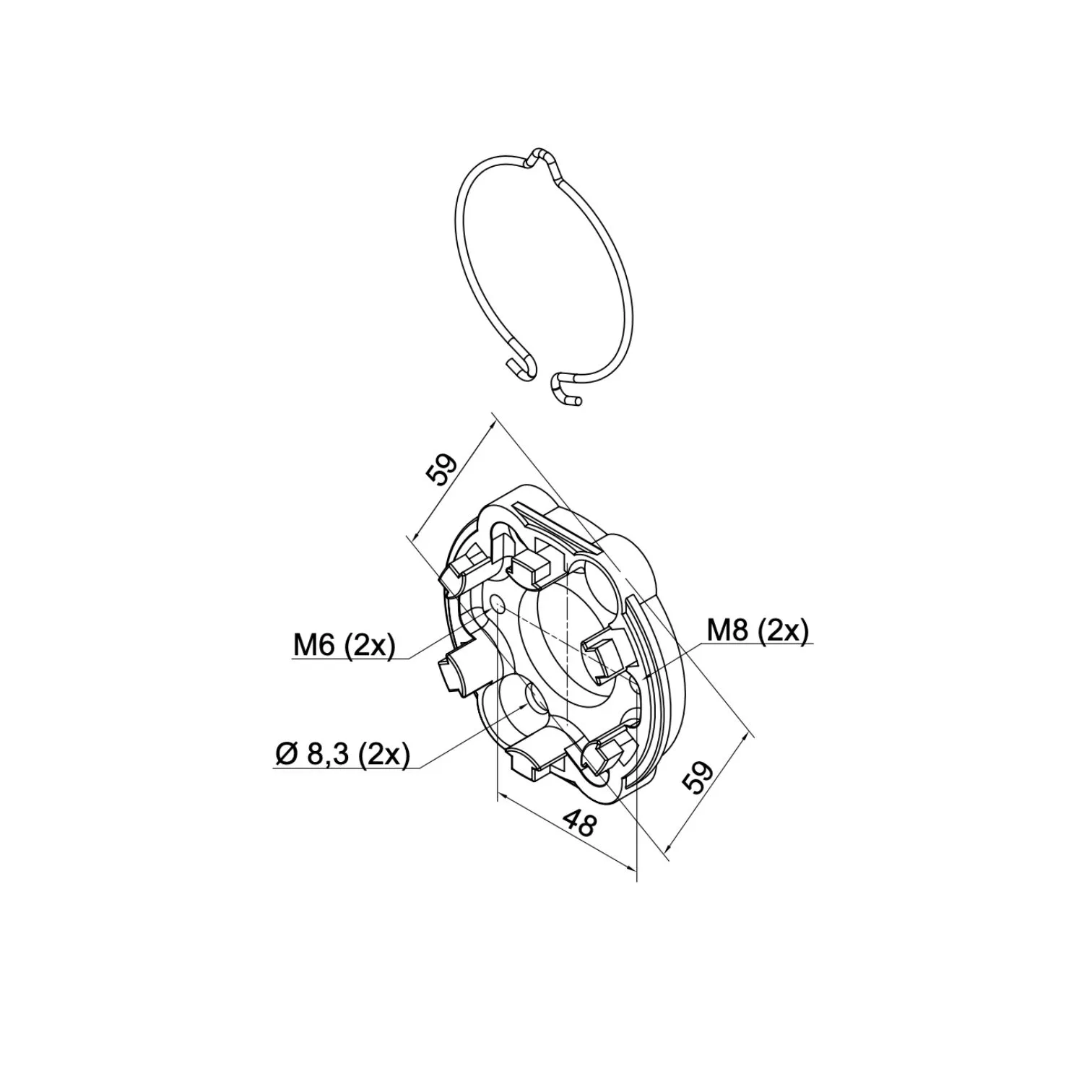 Συμπαγής στήριξη αλουμινίου με ελατήριο για SH και Next. Τρύπες σε απόσταση 48 mm (M6) και 4 οπές 60 mm μεταξύ τους (M8 και Ø 8.3).