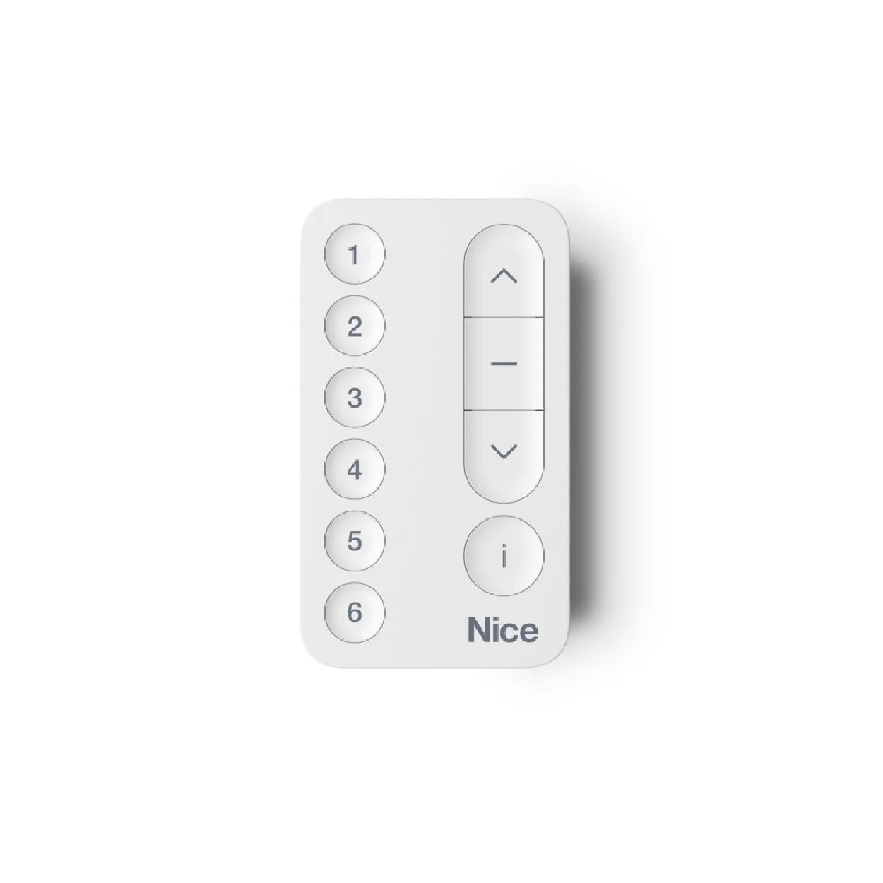 Αναβαθμίστε τον έλεγχο των συστημάτων σας με το Nice MiniDomì 6, ένα κομψό και λειτουργικό ασύρματο χειριστήριο 6 καναλιών σε λευκό χρώμα. Σχεδιασμένο για να προσφέρει μέγιστη ευκολία και αξιοπιστία, αυτό το χειριστήριο είναι η ιδανική λύση για τον απομακρυσμένο έλεγχο ρολών, τεντών, συστημάτων φωτισμού και άλλων αυτοματισμών στο smart home ή την επιχείρησή σας. Με τη δυνατότητα ελέγχου έως και έξι διαφορετικών συσκευών ή ομάδων συσκευών, το MiniDomì 6 απλοποιεί την καθημερινότητά σας, ενώ η λειτουργία του βασίζεται σε μια μπαταρία λιθίου CR2450 για μεγάλη διάρκεια ζωής. Ενσωματώστε το Nice MiniDomì 6 στο σύστημα access control ή τους αυτοματισμούς σας και απολαύστε πλήρη ευελιξία και άνεση. Η εγκατάσταση είναι απλή και η χρήση διαισθητική, καθιστώντας το απαραίτητο εργαλείο για την ασφάλεια και τον έλεγχο του χώρου σας.